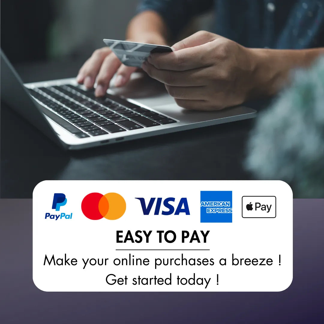 Pay for your purchases with ease using our secure payment options : Mastercard, VISA, American Express, PAYPAL, and Apple Pay. We even cater to diverse currencies. Shop without worry and enjoy a hassle-free experience.